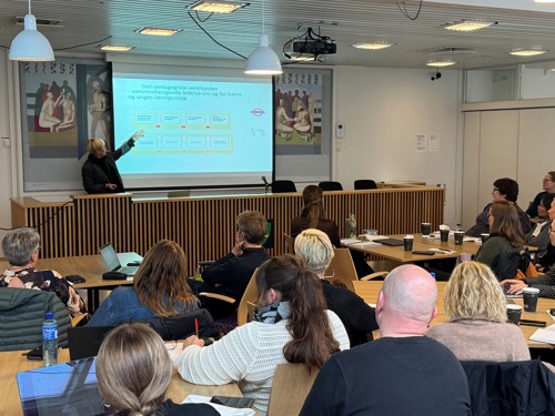 SePUs Hilde Forfang ledet samlinga, som rettet blikket særlig mot koblingen mellom pedagogisk analyse og aktivitetsplikten i både barnehage og skole, og mot ledelse av dette arbeidet. Lederne i Eidsvoll arbeidet med konkrete oppgaver om egen praksis og trekker dette arbeidet inn i forbedringsarbeidet i egen enhet i etterkant av samlinga.