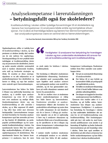 SePUs Knut Olav Nordseth om behovet for analysekompetanse i lærerutdanningen, i siste nummer av "Skolelederen"